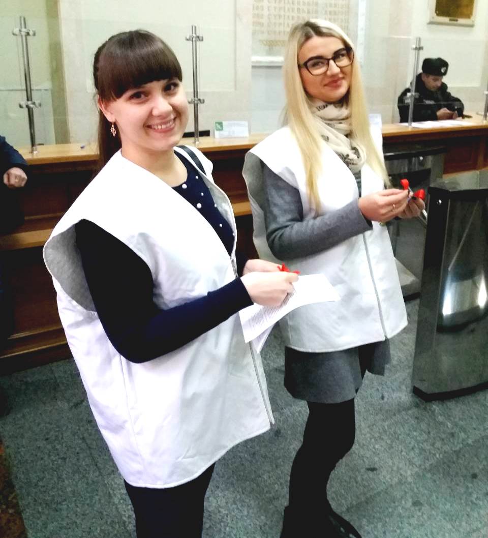 Волонтери Центру роздавали червоні стрічки – символом солідарності до ВІЛ-позитивними, та хворими на СНІД, та корисний інформаційний матеріал працівникам та відвідувачам Міськвиконкому.