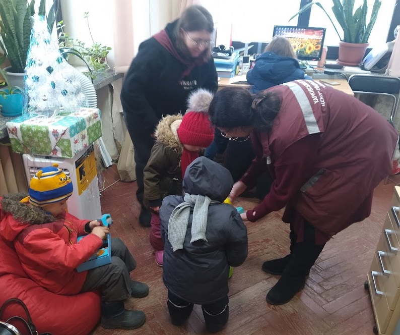 За підтримки Харківського міського голови Ігоря Терехова та адміністрації Слобідського району в бібліотеці-філії №46 Слобідського району відбулось свято за участю представників Відділу соціальної роботи по Слобідському району Харківського міського центру соціальних служб "Довіра". В заході приймали участь діти з сімей внутрішньо переміщених осіб та сімей, які перебувають в складних життєвих обставинах. Діти мали можливість виконувати різдвяні рухливі вправи, відгадувати загадки на тему Різдва та Нового року. Наприкінці всі отримали солодкі подарунки від керівників міста та району.