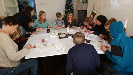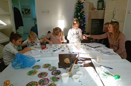 Спочатку малеча разом зі своїми батьками розмальовувала фарбами дерев’яні іграшки на ялинку, а потім кожна родина намалювала свого Миколайчика, якого після закінчення заняття забрала із собою на згадку. Творча частина заходу проходила в арт-терапевтичній студії для дітей та підлітків у приміщенні благодійної організації.