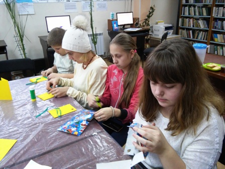 Для створення справжніх шедеврів їй знадобилося зовсім небагато – кольоровий папір, картон, клей, олівці та фломастери. Під керівництвом представників благодійної організації, діти змайстрували декілька вітальних листівок, чобітки для подарунків та прикраси на ялинку. В руках маленьких творців звичайний канцелярський матеріал досить швидко перетворився на різнокольорові кульки, казкових оленів, ажурні сніжинки, подарункові бантики та інші атрибути святкування Нового року.