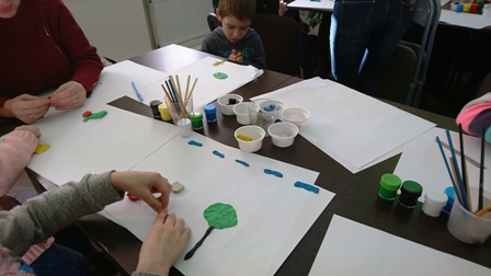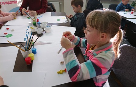 Спочатку малеча разом зі своїми батьками взяла участь у творчому занятті по ліпленню із пластиліну та малюванні фарбами, яке пройшло в арт-терапевтичній студії для дітей та підлітків у приміщенні благодійної організації. За декілька хвилин присутні змогли побачити яскраві та різноманітні композиції, які діти охоче демонстрували оточуючим і фотографували на згадку.