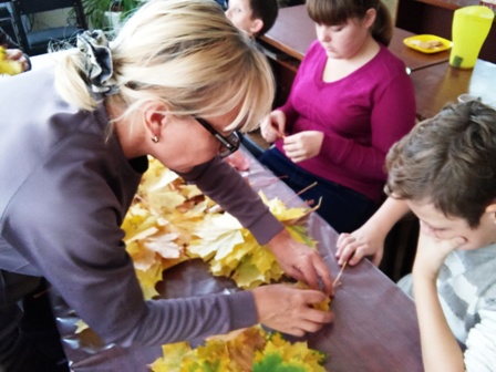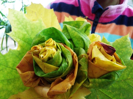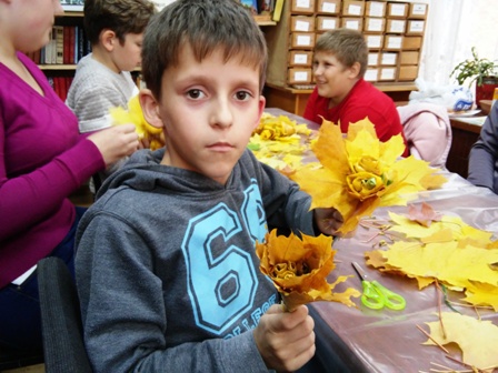 Святковий день діти продовжили на свіжому повітрі. Після невеличкої прогулянки, під час якої вони зібрали багато різнокольорового листя, малеча взялася складати з нього яскраві букети. Поєднання жовтих, зелених, червоних та оранжевих листочків творило справжні дива, перетворюючи їх з осінньої ковдри на землі в справжнісінький витвір мистецтва.