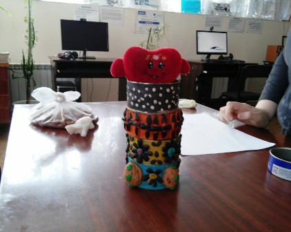 Черговий майстер-клас для малечі довів, що навіть із простої жерстяної баночки можна зробити щонайменше цікавий декор для своєї кімнати. За допомогою різнокольорового пластиліну та деяких підручних матеріалів діти прикрасили непоказні ємності квітами із пластиліну, шкаралупою грецького горіха і навіть звичайнісіньким насінням соняшника. Їм так сподобалася ця ідея і те, що з неї вийшло, що вони не лише швидко зробили оригінальний декор, а й із задоволенням забрали готові предмети побуту собі на згадку.