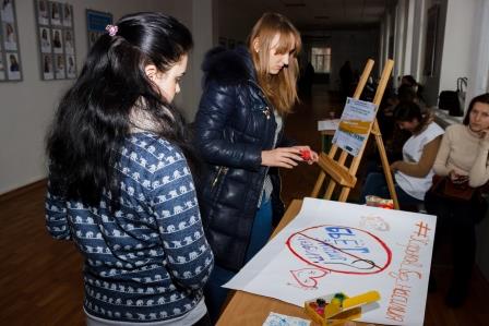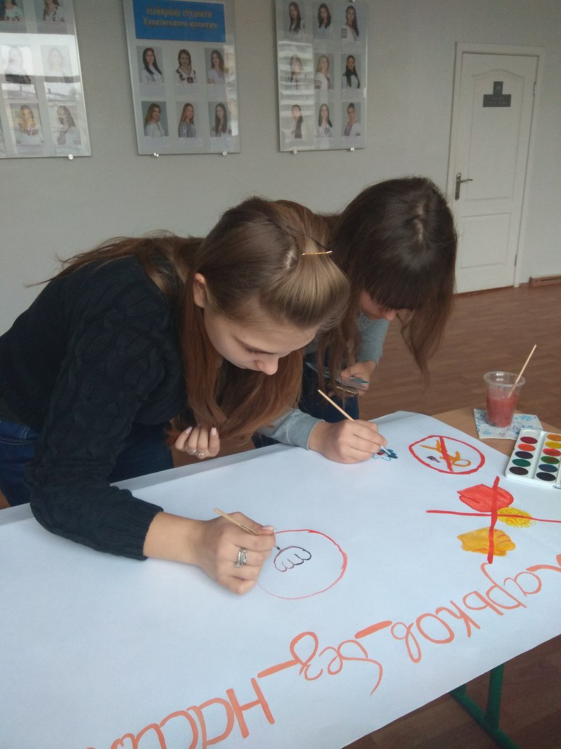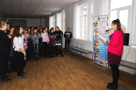 Студентам був запропонований відеолекторій на тему «Торгівля людьми - небезпеку видно не одразу», та розповсюджено інформаційні листівки на тему «Профілактика насилля в сім`ї», та «Не стань жертвою тогрівців людьми!». Дана тема особливо актуальна саме серед студентської молоді, тому що студенти – це майбутні молоді спеціалісти та фахівці. Після отримання освіти вони починають пошуки роботи, але часто стикаються з тим, що без досвіду роботи важко знайти підходяще місце. Роботодавці неохоче беруть вчорашніх студентів. А навкруги купа оголошень про роботу за кордоном з привабливими умовами та ще привабливішою зарплатнею. Але така «казкова» робота може виявитися пасткою!