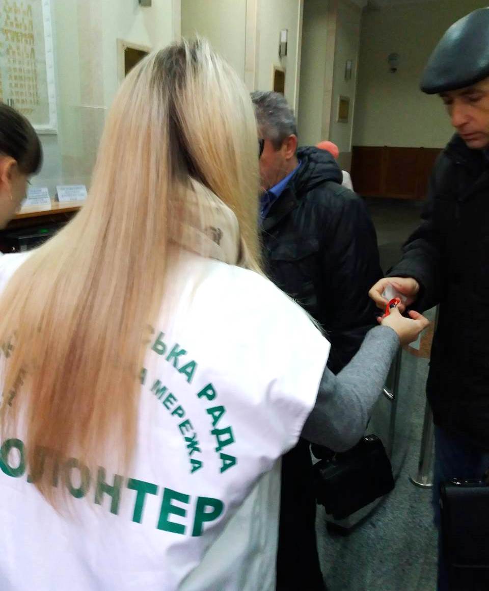 Волонтери Центру роздавали червоні стрічки – символом солідарності до ВІЛ-позитивними, та хворими на СНІД, та корисний інформаційний матеріал працівникам та відвідувачам Міськвиконкому.