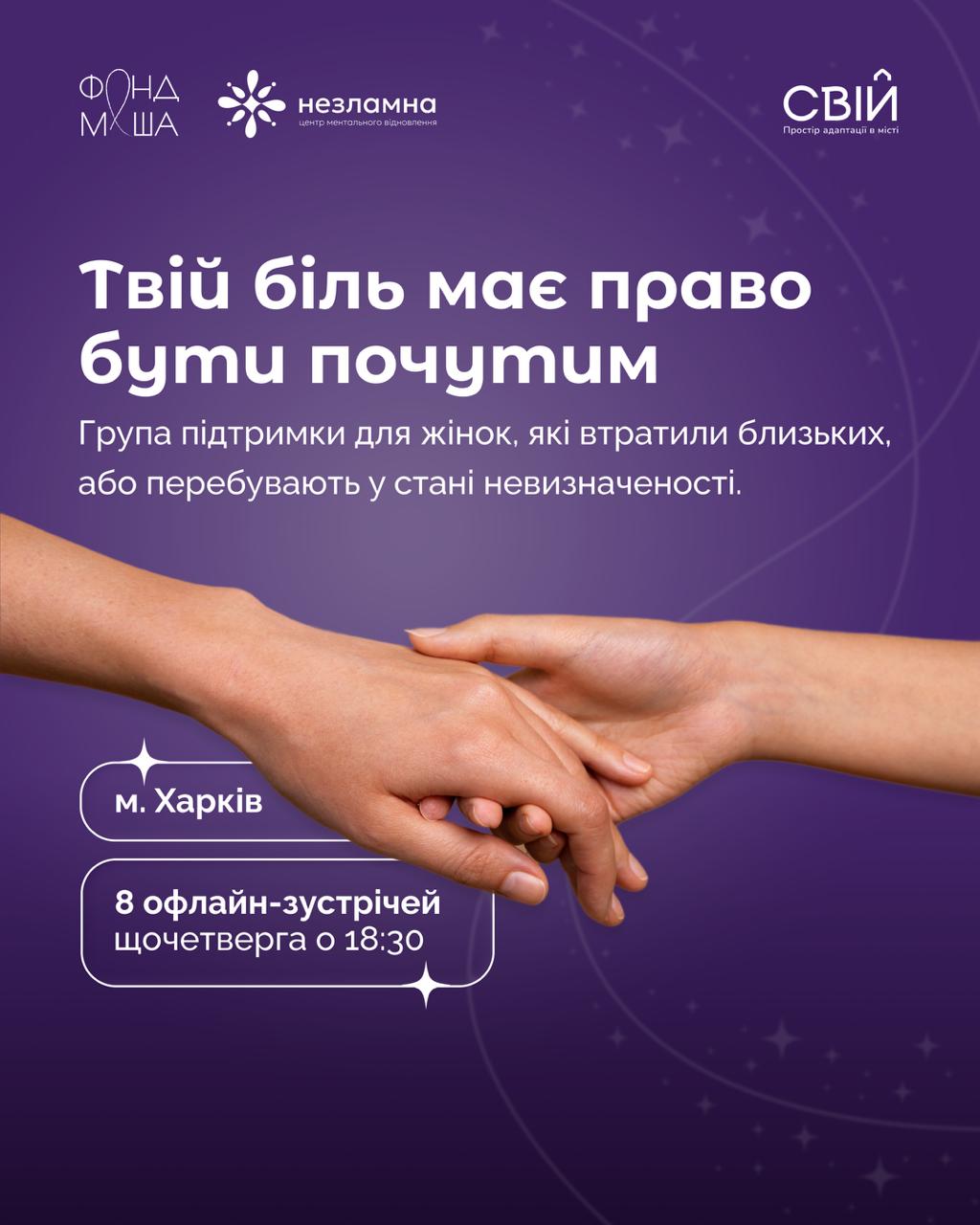 У Харкові ми відкриваємо безпечне коло, де вас зрозуміють без зайвих слів.